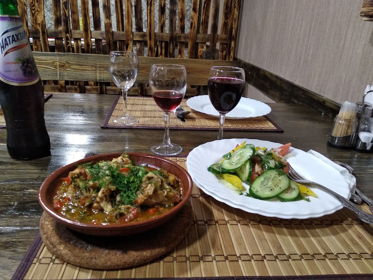 Upon entering, you're greeted by a cozy ambiance that invites you to relax and enjoy every moment. The rustic decor creates an intimate setting, perfectly suited for a meal with friends or a leisurely lunch. As you settle in, prepare to embark on a culinary journey that celebrates the rich heritage of Georgian cuisine—a rarity in these parts!